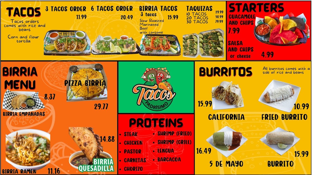 Introducing Tacos Padrísimo, a delightful Mexican restaurant nestled in Kissimmee, FL. This vibrant eatery showcases a menu bursting with authentic flavors, highlighting fresh ingredients and hearty portions. The standout item is the Torta, a satisfying delight featuring lettuce, tomatoes, grilled cheese, mayo, and a zesty green sauce for just $19.99. For starters, indulge in the Salsa and Chips ($6.49) or the creamy Guacamole and Chips ($9.99), both highly praised by delighted customers.